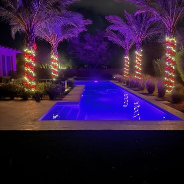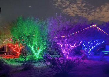Red & Blue C9 + Blue Trees, 3 Multi color bushes, + Red, Green, and Blue bush